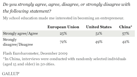 According to Gallup, Europeans don't see their education system as conducive to producing entrepreneurs, unlike Chinese or Americans: