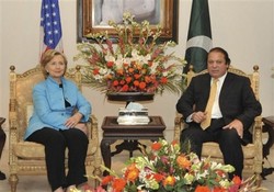 Just hours after a car bomb in Peshawar killed at least 91 people, Secretary of State Hillary Clinton kicked off a three-day visit to Pakistan, where she praised the country's fight on extremists and pledged U.S. support.