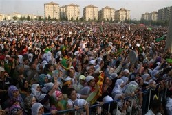 A victory parade by returning PKK fighters threaten to derail the peace process between the Turkish government and Turkey's Kurdish minority.