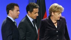 Russia's President Dmitry Medvedev has accepted an invitation to attend a NATO summit next month, following talks with French and German leaders aimed at allaying Russian fears about missile defence plans.