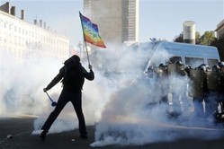 Police were clashing with demonstrators in the French city of Lyon Thursday, as street protests continued over plans to increase the retirement age to 62.