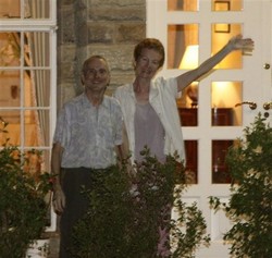 Freed British couple Paul and Rachel Chandler appear to be in good spirits during a medical check-up in Somalia.