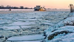 Icebreakers are trying to free three Russian vessels trapped in the frozen waters of the North Pacific.